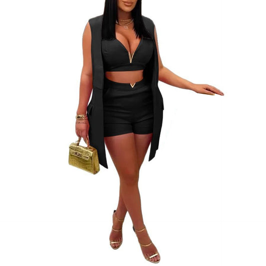 Elegant Office Vest Collared Cardigan Three Piece Sets