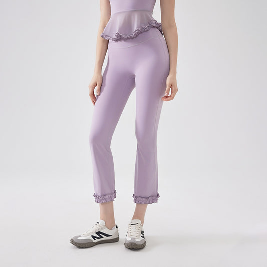 High Waist Lace Slimming Smoke Tube Cropped Pants Slim Fit Yoga Pants Women Hip Lifting Running Workout Pants Fitness Pants