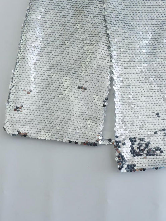 New fashion hot girl silver sequined high waist skirt with slits on both sides
