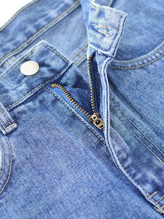 Stepped Waist Raw Hem Rolled Straight Jeans