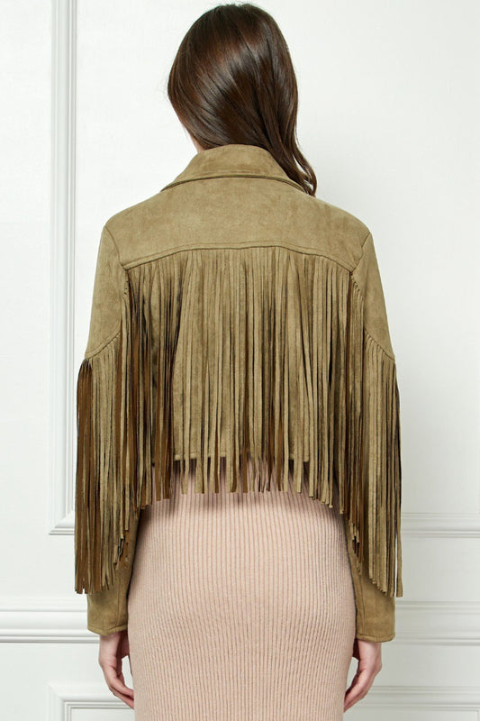 Veveret Suede Fringe Long Sleeve Moto Jacket