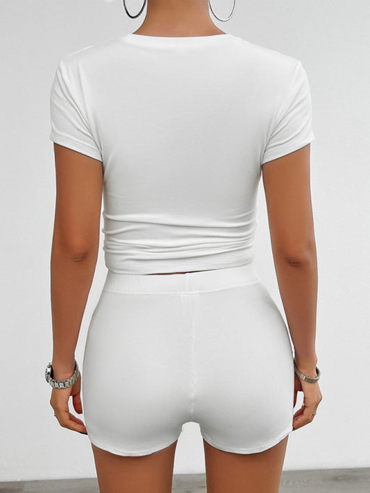 Women's Y2K casual sports T-shirt hip-lifting and tummy-control three-quarter pants two-piece suit