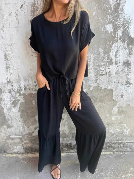 New solid color short-sleeved trousers casual two-piece suit