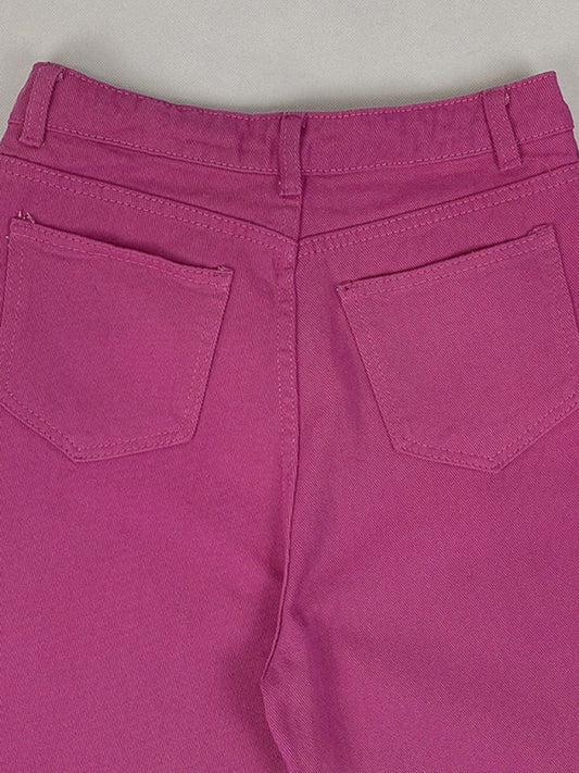 Bow Embroidered Fashion Casual Non-Stretch Straight Trousers