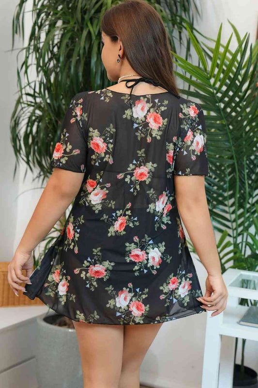 Plus Size Printed Tied Sleeveless One-Piece Swimsuit