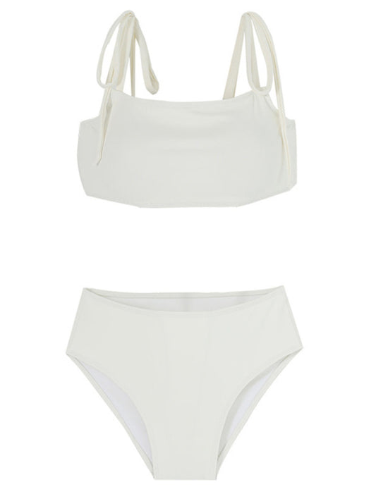 New solid color sexy split swimsuit high waist strappy swimsuit