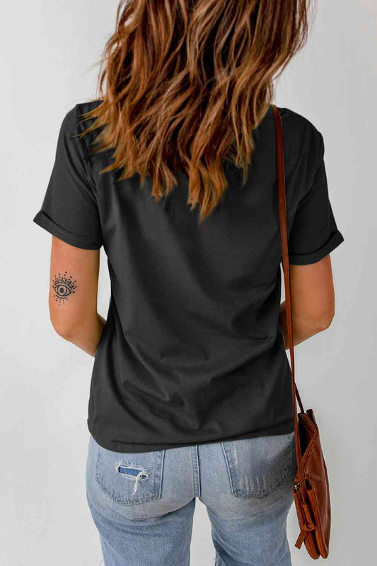 Slogan Graphic Cuffed Tee Round Neck Tee Shirt
