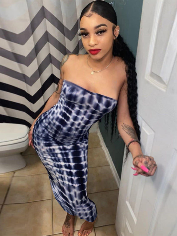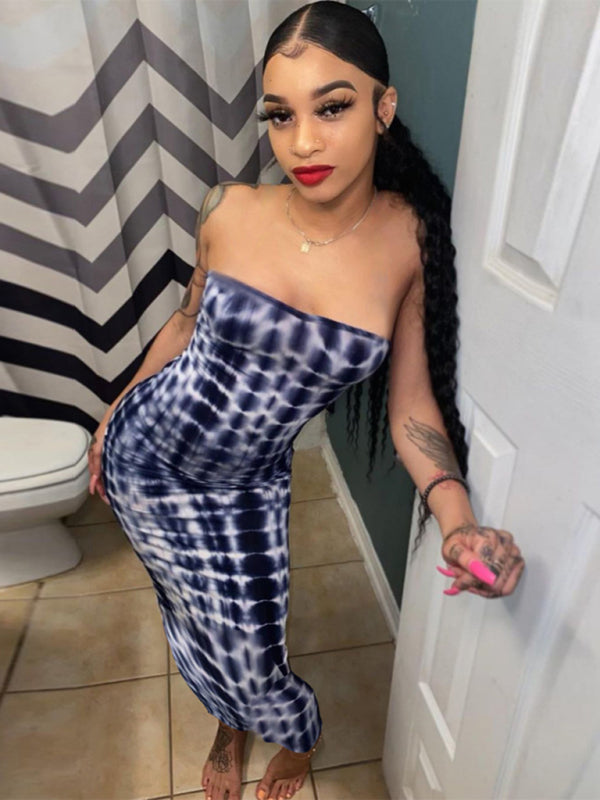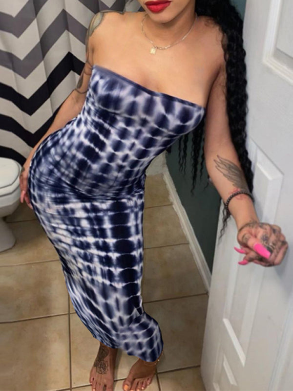 New arrival ladies colorful tie-dye off-shoulder wrap dress