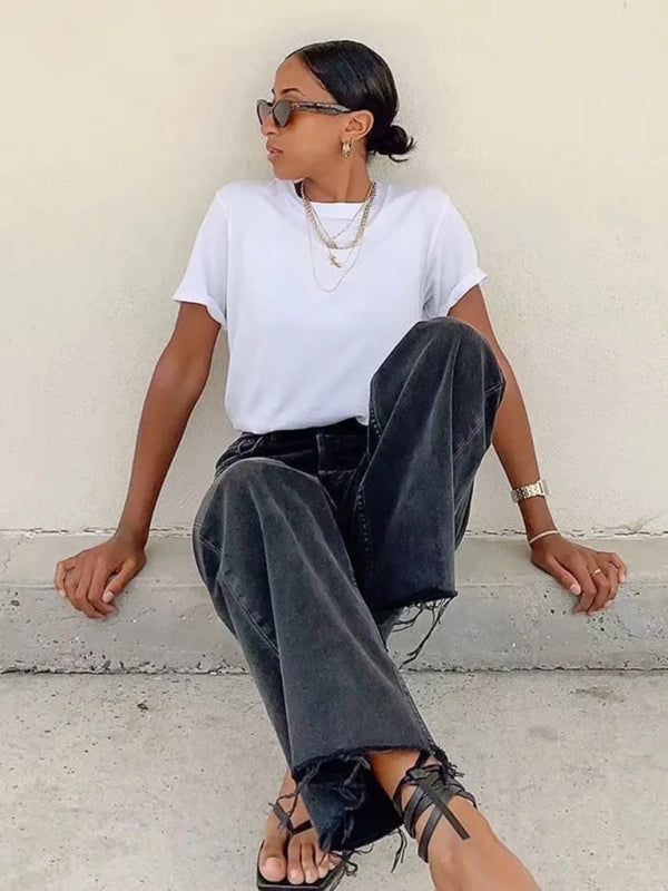 New high-waist floor-length loose slimming straight wide-leg jeans