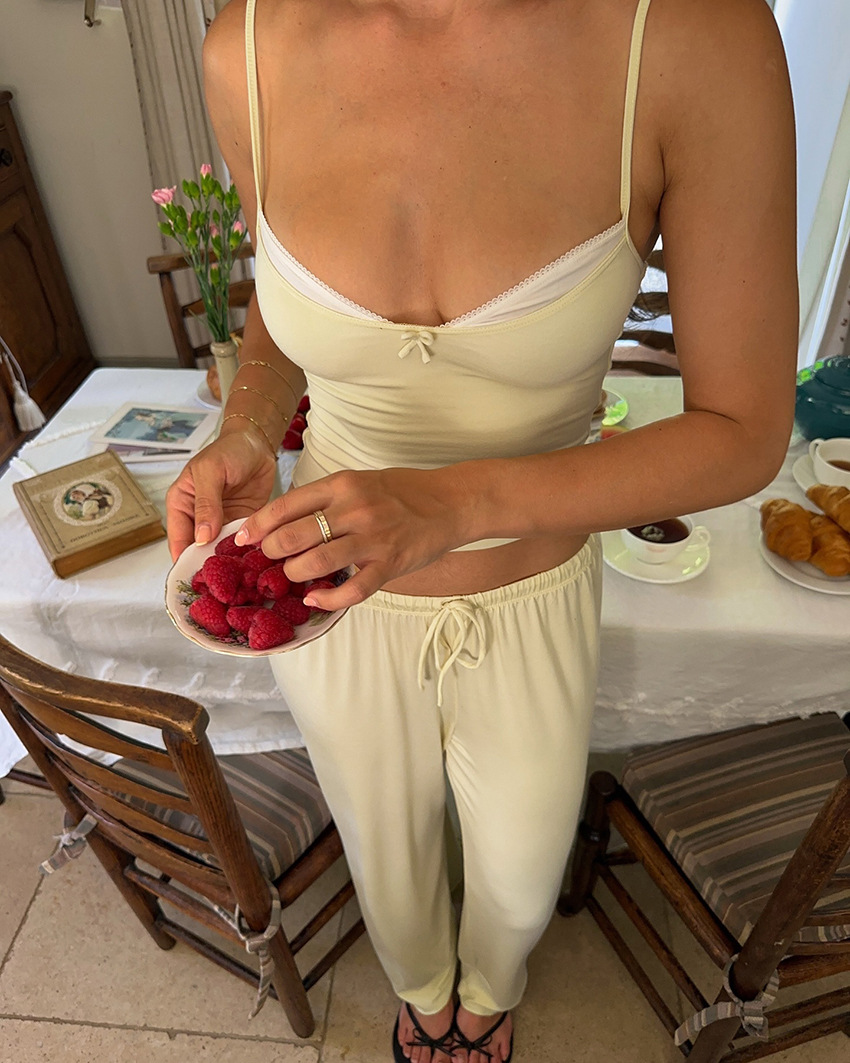 Patchwork Suspender Trousers Waist of Trousers Drawstring Bow Two Piece Sets Pajamas Casual Comfortable Homewear