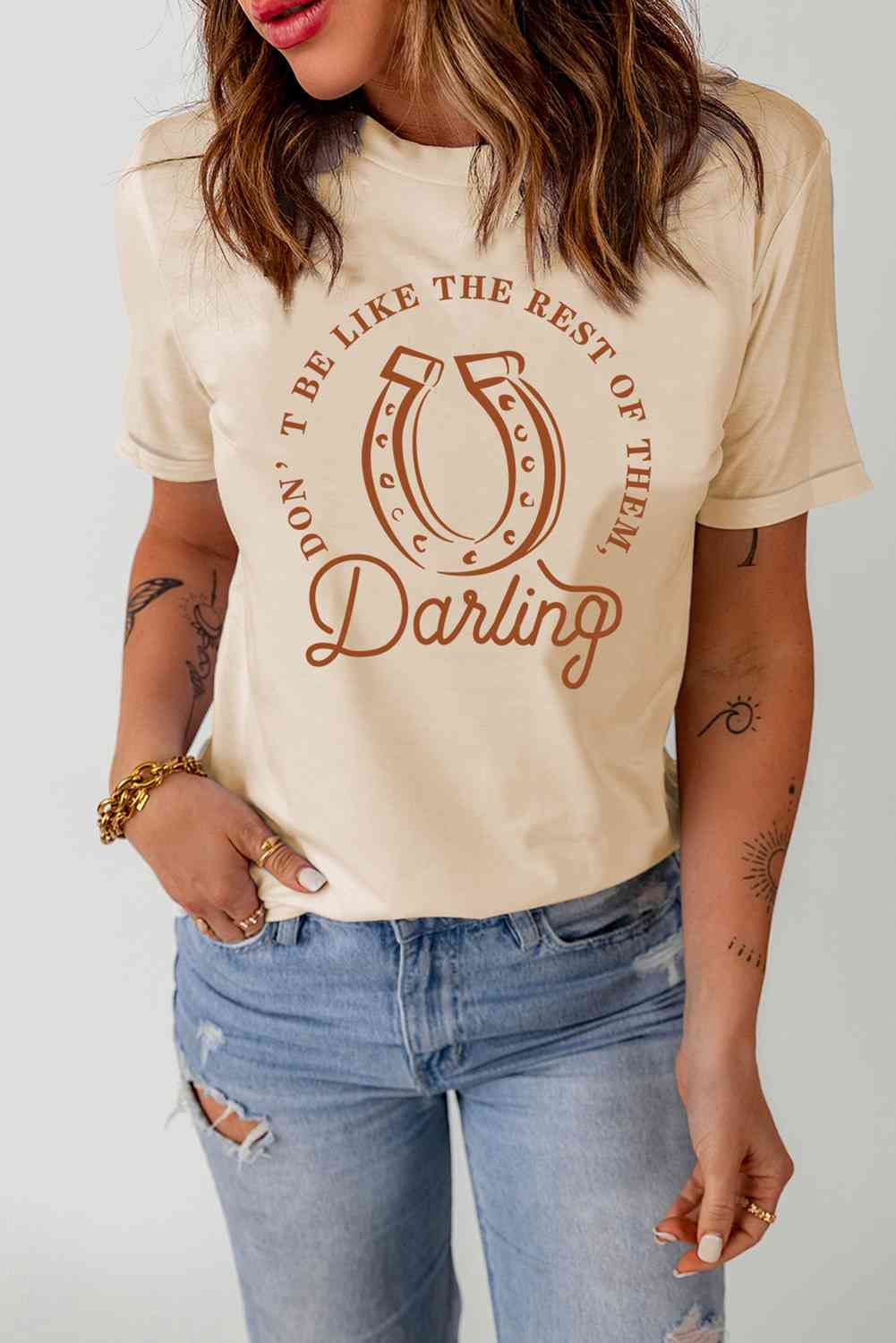 Slogan Graphic Cuffed Sleeve Tee Shirt