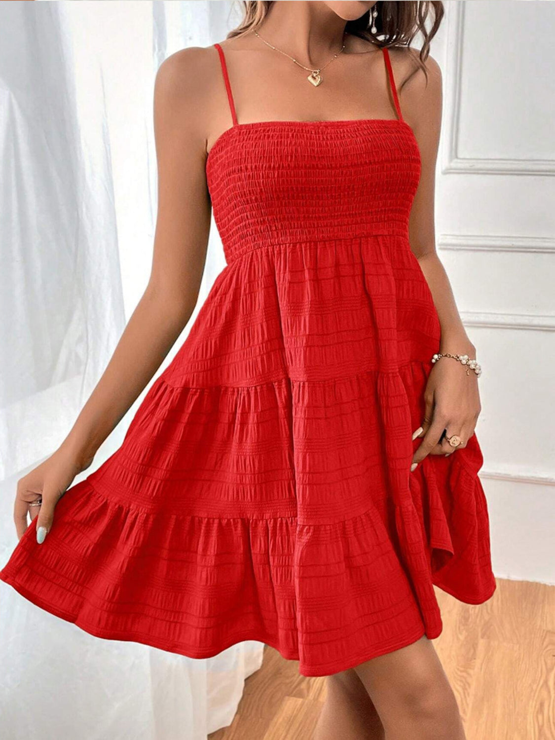 Smocked Square Neck Mini Cami Dress