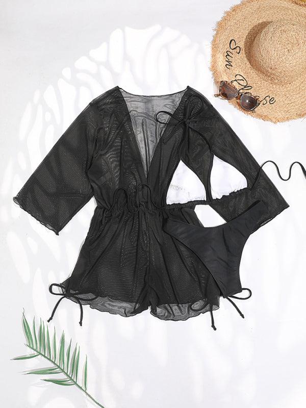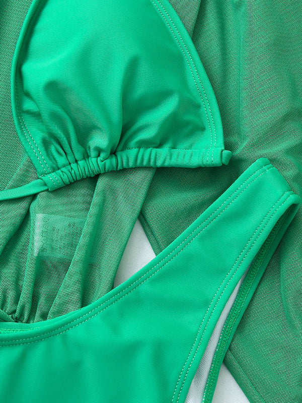 Women's Solid Color Sexy Lace Up High Waist Bikini Three-Piece Set